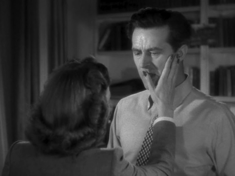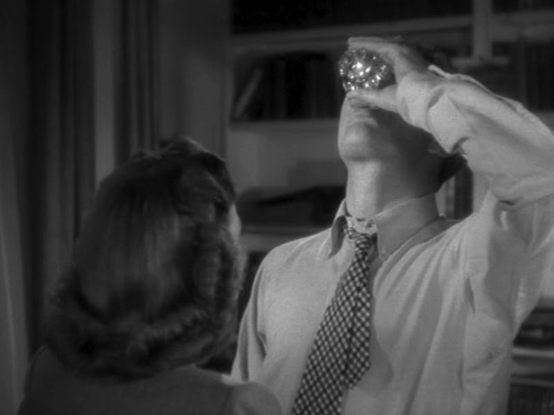 In the first scene of The Lost Weekend (1945), directed by Billy Wilder, Helen (Jane Wyman) arrives at Don’s (Ray Milland) apartment. He seems to be going away for the weekend (which will not happen). He appears to have stayed away from alcohol for a few days (which is not true). He hides the truth and keeps his distance from her and his brother Wick (Phillip Terry). Yet Helen approaches Don and tells him to bend down. He closes his eyes (fig. 1a), bends down (fig. 1b), turns his face to her (fig. 1c), and they kiss (fig. 1d). His closed eyes signal the mechanised nature of a succession of gestures that he probably has done many times and that he does not refuse to repeat. She utters a command not a request. He gives the impression of being reluctant, but follows the order. The distance between them is lost.