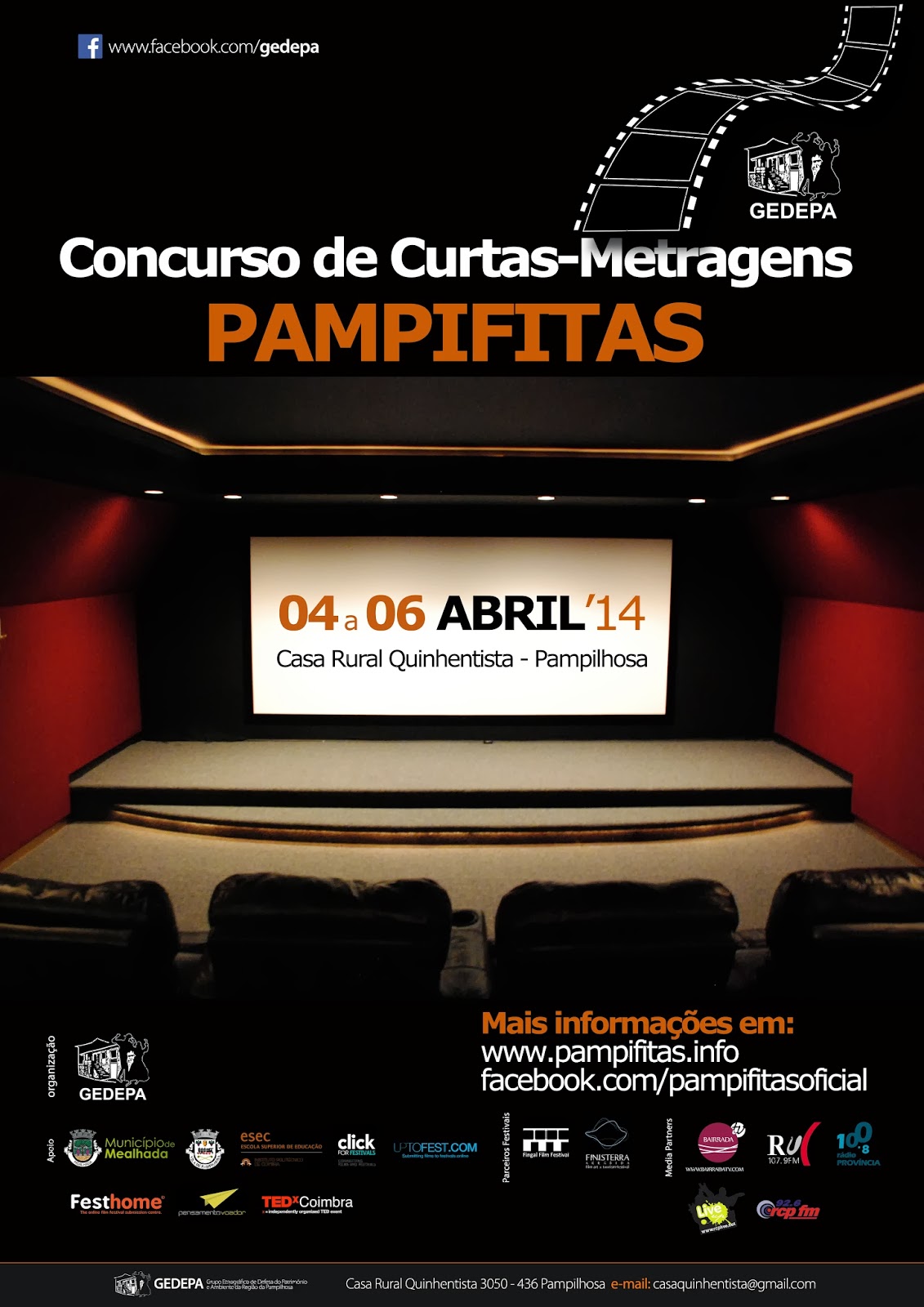 O Pampifitas tem este ano a primeira edição e é um festival de cinema organizado em colaboração com o Grupo Etnográfico de Defesa do Património e Ambiente da Região da Pampilhosa (GEDEPA). Serei o presidente de um júri que inclui ainda Fausto Cruchinho, António Costa Valente, e Ana Catarina Pereira — além de Gil Ferreira, Irene Aparício, e Luís Pato como curadores. Agradeço, mais uma vez, o convite que me foi dirigido e que aceitei com agrado, por ver nesta iniciativa uma oportunidade para que a criação e fruição do cinema deixem de ser estranhas à Pampilhosa e aos seus habitantes. O sítio electrónico contém mais informação sobre este acontecimento.